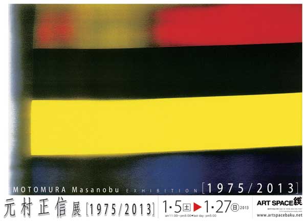 今回は、元村のほぼ中期にあたる1991年、竹によるシリーズ最後の作品「秘めたる色」が、同時期開催の「福岡現代美術クロニクル1970-2000」(福岡県立美術館・福岡市美術館共同企画)に出品されているのに合わせて、アートスペース貘では、元村正信のデビューとなった1975年東京・田村画廊個展「複写機による反覆の反復」 の出品作からの再制作。そしてその75年から78年「水のないプール」へと展開した、透明ビニールを重ねていく手法による2013年カラーコピーバージョン。さらに新作のペインティングを加えた作品を同時にご覧いただく企画です。この対極的ともいえる元村正信の最初期と最新作を並示することで、38年という時間を貫いてきたものとは一体何か。その変貌の現在を見ていただければと思います。