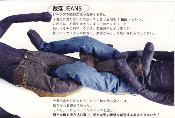 ジーンズを裁断するときに生じる「裁落」。これらを利用して新たにジーンズを作り出す。ゴミとして捨てられる運命にあるものに新たな命を与えるものを創造するシリーズ。