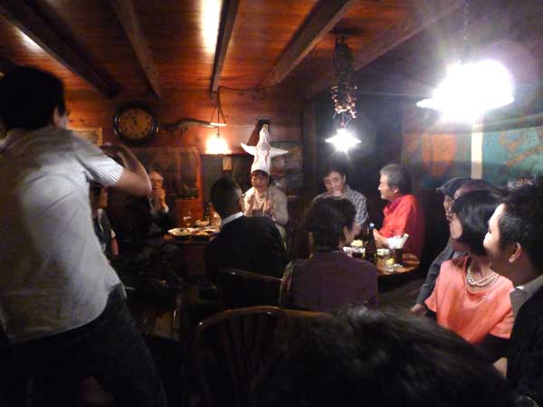 今の季節に送別会とは珍しいけど長年勤めた福岡美術館の学芸員を辞められた川浪千鶴氏が高松の美術館に移られることになりました。長年、福岡の美術に貢献されてきた川浪さん!ご苦労様でした。これからは高松の美術界が賑やかになるでしょう。太陽の塔の帽子を被っているのが川浪さん、福岡のそうそうたるアーティスト達とのお別れは名残尽きなく続いています。