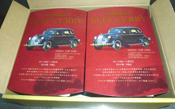 「車だけではなかった」 先日、頂いた珍しいカレー!トヨタは車だけでなく、カレーも作っていました市販されていないと言われてもらいましたが、本日、通信販売でもあるとのことでした。トヨタ第1号の車のデザインもカッコイイ!