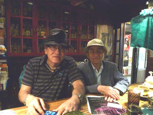斉藤秀三郎さんとリバーサイドのマスター!もうすぐ92歳の斉藤画伯(右))とジャズ喫茶の老舗、リバーサイドのマスター(左)斉藤さんはジャズが好き!R・Sのマスターは斉藤さんのキャベツの作品が好き!と言うことで老舗同士で息が合ってました。