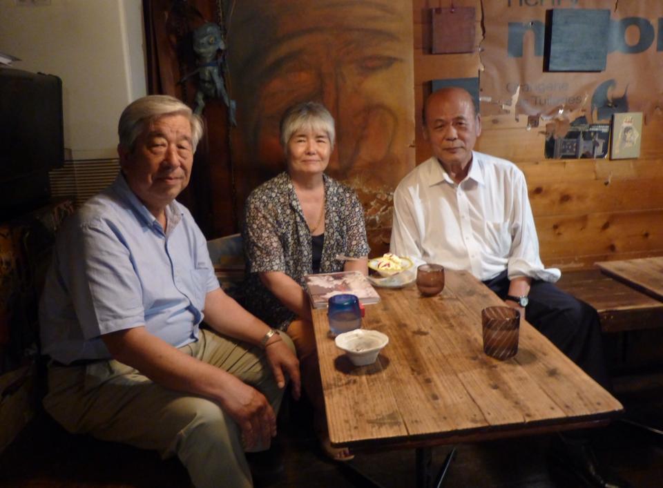 「久しぶりの再会」 フランス在住の画家池田さんが福岡で個展するので帰福。小説家、詩人の井本さんと再会。池田さんの奥さんも一緒にハイ!チーズ!