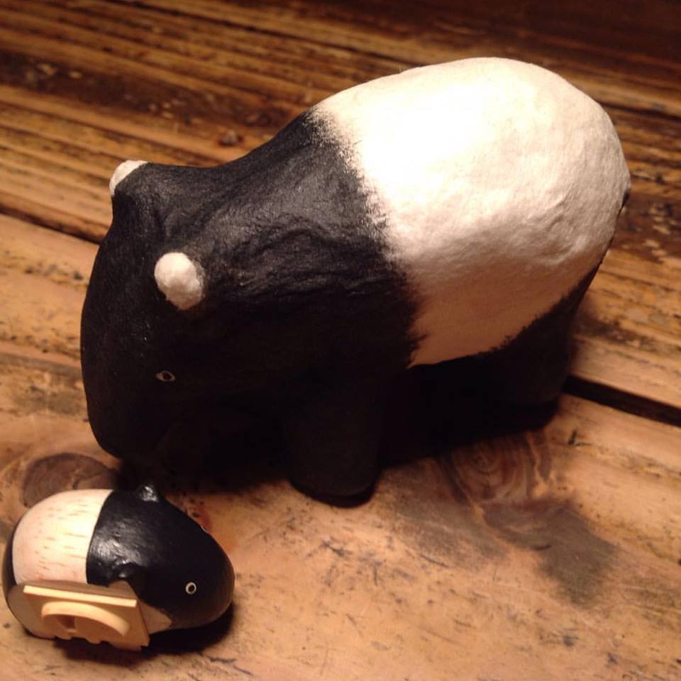 「貘の仲間が増えた^_^」 夕希ちゃんが京都から買って来てくれた張子の虎じゃなくて張子の貘とスタンプ付きの貘ちゃん‼ #sculpture #art#gallery #photo 3lightbox(yukiguru.jpg,,50%)