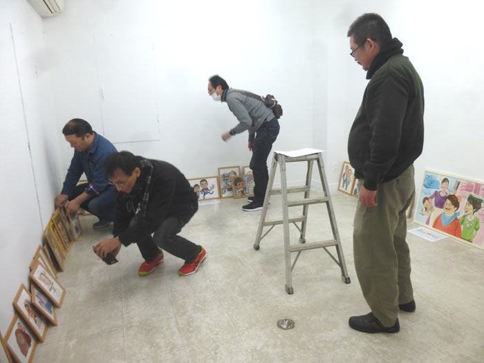 「素早く終了」 明日から始まる高尾裕之さんの搬入、手伝いが多くて素早く終了。楽しいイラストです。