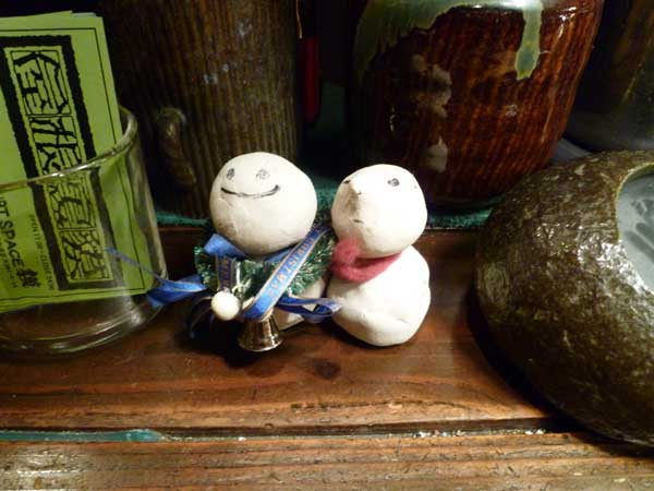 夢工房獏から屋根裏獏にやってきた雪だるま君たちマフラーを巻いて貰ってX’MASの準備OK!
