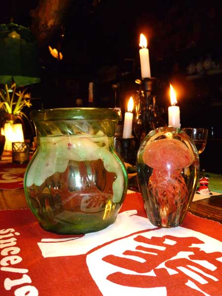 おかげさまで今年度最大のイベント、記念日とXmasも終わりました。でそこに残った妖しい物体。くらげを閉じ込めた?それとも古代生物のレプリカ?不思議な贈り物ですが小林重予さんの作品(左)と並べてみました。と重予さんの妖しい作品もグッと生きてきたのが素晴らしい!