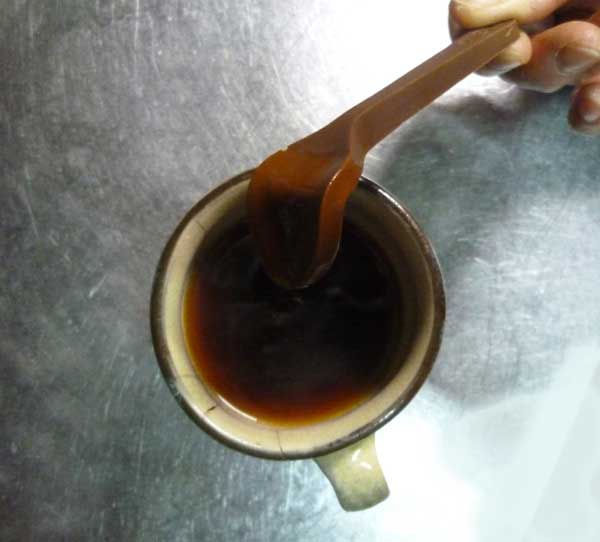 佐知さんに報告を兼ねて、先日貰ったチョコのスプーン。冷えた珈琲ではかき混ぜられたが淹れたばかりの熱いコーヒーはご覧のとうり曲がってかき混ぜられなかった。熔けて下に溜りました。完全に溶かすだけの熱がなかったからです。やはりチョコスプーンをかじりながら珈琲を飲むのがいいです。甘い愛情をかみしめました。