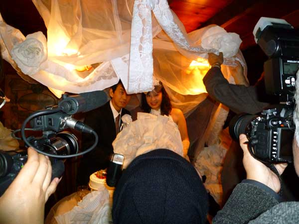 先日、4人の悪女の企みは千春ちゃんには何も知らせずに突然のバースデーパーティ!更に追い討ちをかけるように籍は入れたが忙しくて式を挙げていない高原、山口両人の結婚式へと突入! 2人はあまりのサプライズに高原君は足が振るえ、山口千春ちゃんは涙、涙、涙・・・・・・・・・・・・・・・・・・・・感激のなかでの指輪交換とケーキ入刀! 大勢の仲間に祝福されて幸せ一杯でした。千春ちゃんに隠れてウエデングドレスを仕立てた恭子に喝采!そして仲間の写真家達が写真を撮ってくれていました。今日は素晴らしい日でした。千春ちゃんの誕生日は2月19日でした。千春ちゃんは現代舞踏家です。あちらこちらで踊っています。気がついたら見に行って下さい!