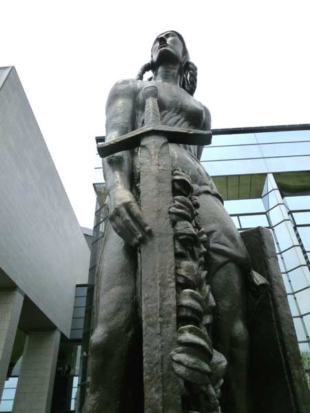 市美で開催中のグループ展。その中の一人、内籐修子さんの作品。アートスペース獏でも今年の10月に個展をします。美術館の床にド~ンと鎮座しあたりを威圧?しています。隣でやっている浮世絵展の北斎のお化けにも負けてないあの世の世界を感じました。