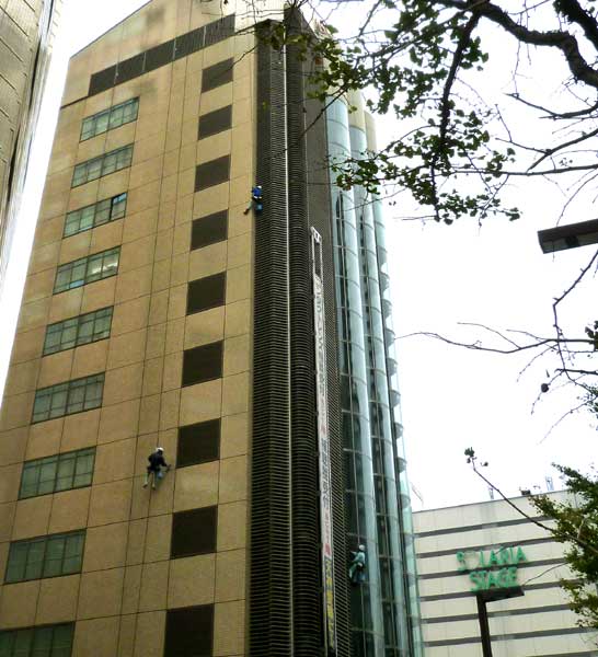 堤防の上を歩くのも怖い獏ちゃんは高所恐怖症。なのにビルに張り付いた3人様は偉い!憧憬の眼差しで暫く見あげていました。