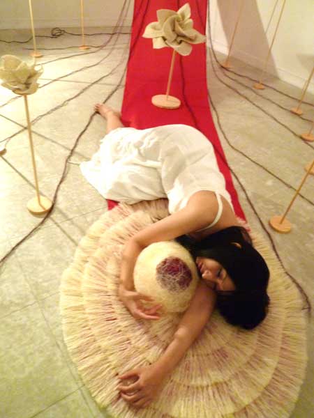 只今、展示中の森山さんに了解を得てユキちゃんを森山さんの作品の中に入れました。撮影はケイちゃん。僕は横からちょと記録撮影!ケイチャンは胎内をイメージしてユキちゃんを連写していました。いい作品はいい写真を生み出すでしょう。楽しみです!森山さんも期待していてください!