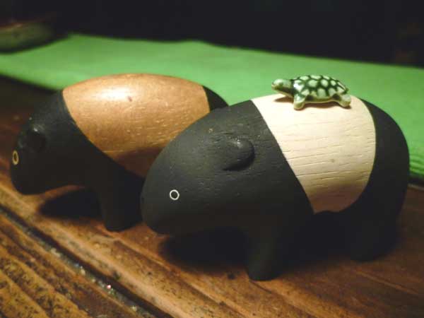 東京から帰郷した栄子ちゃんがくれた亀!財布に入れていた縁起物!お金が貯まるんだって!早速、獏大明神の背に乗せてお願いした。来年は商売繁盛!