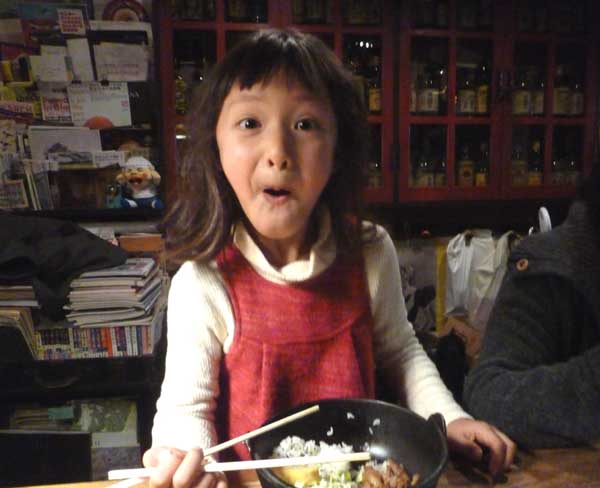 今日はお母さんとお出かけ!その前に腹ごしらえ!唄って踊ってまだパファフル!これが変な顔!きっと美人になるでしょう!!