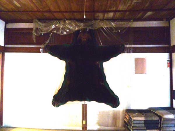 今日も撮影クルーに同行して玉のい旅館に!只今旅館業は廃止されていますが地域に根ざした芸術プロジェくトなんかを推進、展示会などされています、その旅館に、北海道で仕留められた熊の毛皮が飾られていました。