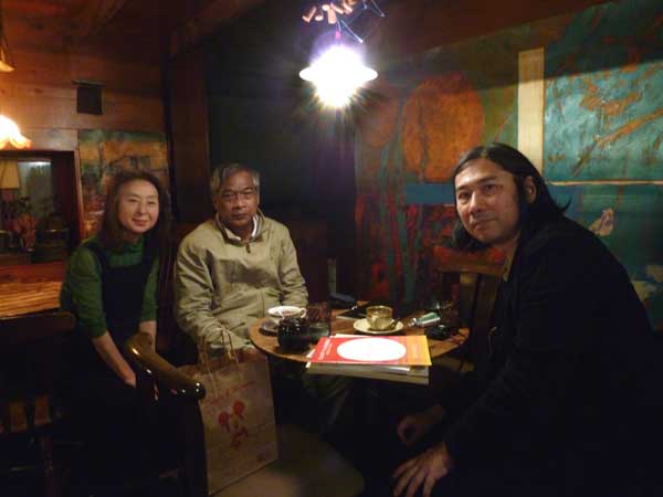 「ガンゴー・ヴィレッジと1980年代・ミャンマーの実験美術」展が福岡アジア美術館で2012.12.13~3.19まで開催されます。そのためにミャンマーから福岡を訪れた作家のサン・ミン氏と記念撮影!左から律子さん、真ん中がサン・ミン三。右端が黒田雷児さん。サン・ミンさんはヴィレッジの長!村長さん?