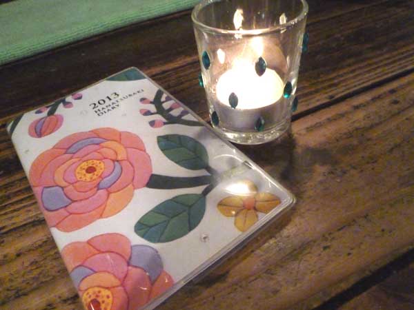 手帳を使ってみようと思って夏ごろ来年の手帳を探していましたがいいのがなくて忘れていたら「ゆかり」ちゃんが「花椿」の手帳をくれたのでこれを使うことにしました。蝋燭も貰ったのでXmasに灯します!