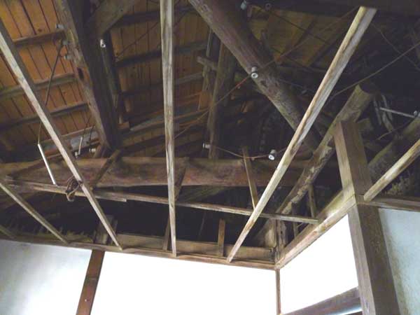 先日、ロケの許可をもらった旅館の天井、廃業したとはいえ天井の骨組みが美しくしっかりしている。!