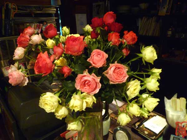 買われて来て、2日間の命。カウンターを飾った薔薇ちゃんたち。明日はドライフラワーにと吊るされる運命になりました。儚い命も永遠の命になります!
