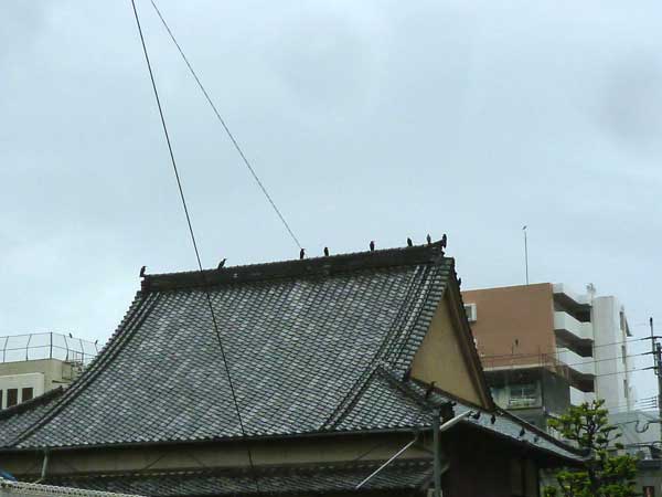 近所のお寺の納骨堂の完成間近というわけでもないだろが鴉が寄り集まって祝福?