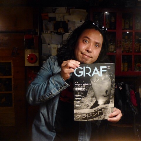 農家民宿経営の錦戸君、次なる北海道での写真展の為、写真を撮りに北海道に行く途中にグラフの最新号を持って貘に寄ってくれた^_^
