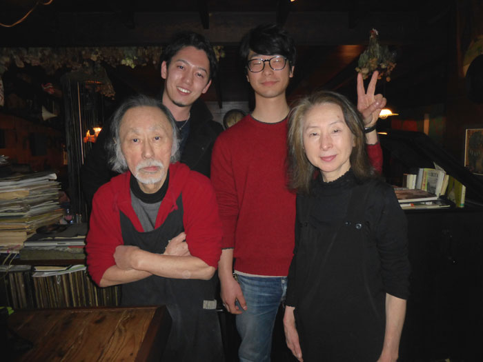 全国を風のように渡り、歌を歌っております。土曜日は親不幸通りにあるビンゴというお店で歌うとのこと。律子さんが店を抜け出し聞きに行ったところ獏のクロージングタイムに流すトムウェッツの「クロージング・タイム」を歌ってくれたので感動して帰ってきました。歌詞は獏用になっていました 風さんは昔、獏でバイトをしていて毎晩、この曲を聞いていました。右端が風さんです。