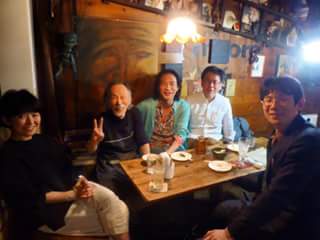 いつも野村佐紀子ちゃんの写真集をデザインしてくれている町口さんに会えて嬉しかった。左側から佐紀子ちゃん、貘ちゃん、町口さん、大日方先生、産大の学芸室長の中込さん楽しい夜でした。