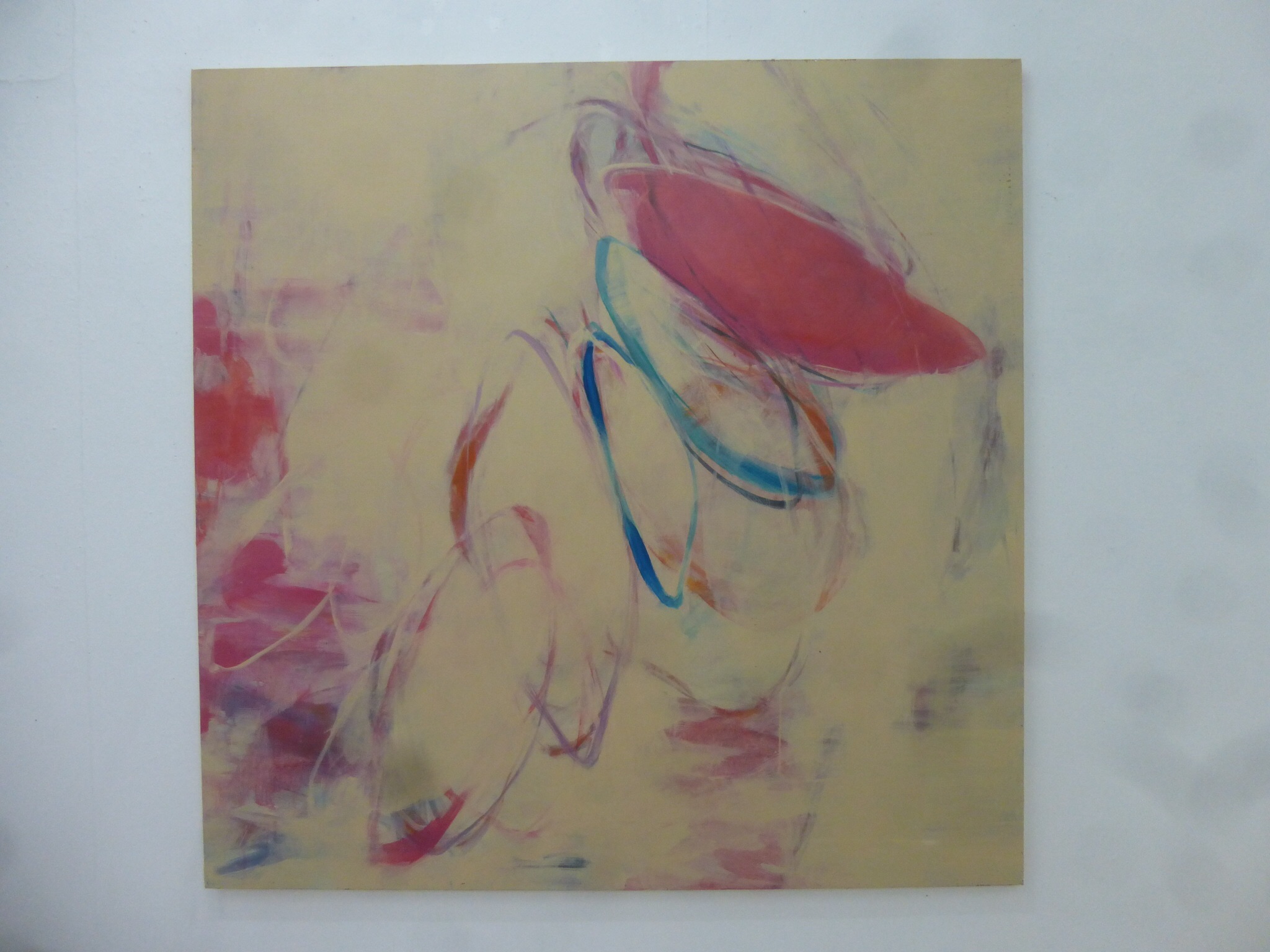 淡いマゼンタやモーブの色彩が織りなす優しさにみちた絵画です。