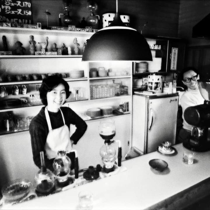 若い小田夫妻が始めたばかりの喫茶「貘」の当時のカウンターの1ショットが出てきた。