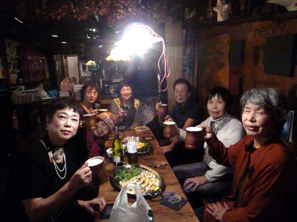 日からの個展・内藤修子さんの飾りつけが終わり、長崎から応援に駆けつけたお友達とささやかなオープニングパーティ!盛り上っていました。二次会は律子さんも一緒に屋台に繰り出しました。