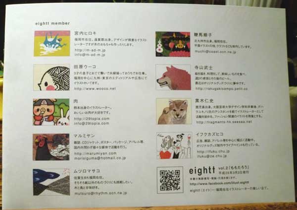 この絵本「ももたろう」は産大デザイン科卒業生8人が作り上げている子供向けの絵本です。昔話の「桃太郎」のストーリーを8人が手分け、見開きを一人の持分としてイラストを描き完結させています。福岡在中で活躍している優れたデザイナー達の手による絵本。獏でも無料で配布しています。子供さんがおられるかたは是非是非!しかも彼等はコスト削減の為、皆で製本をしています金儲けのでなく自分たちの楽しみのために活動しています。印刷は足長おじさんがやってくれますので広告もありません。こんな集団が福岡にいるなんて素晴らしいことです。しかも絵が素晴らしい!一人一人の個性が溢れんばかりに躍動しまくっています!