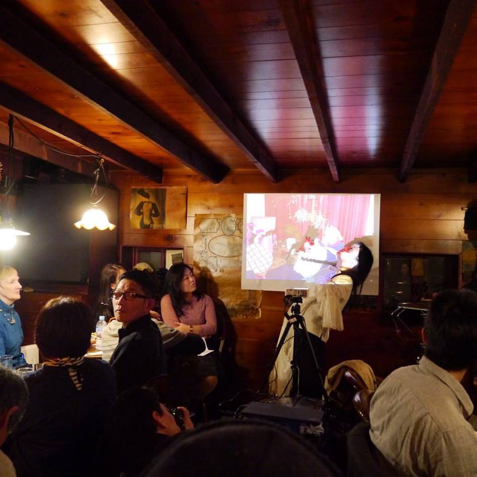 「テーマさんのお別れ会」 日本の現代舞踏の研究で長いこと日本に滞在し、九大でも教鞭をとってらっしゃたテーマさんが退官されハワイに永住されることになりお別れ会を‼️千春ちゃんと凉子ちゃんが亡きテーマさんのご主人の映像の前で踊りました。テーマさんとご主人の深い愛情に感激です^_^