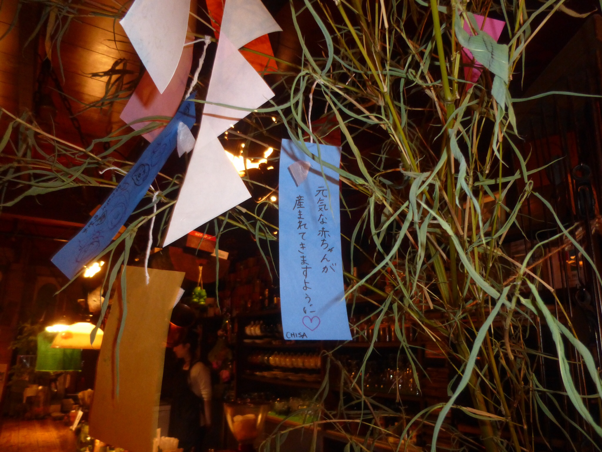 「願いを込めて‼️」 もうすぐ七夕祭り、「元気な赤ちゃんが生まれますように」短冊に書かれた願いが光っています^_^