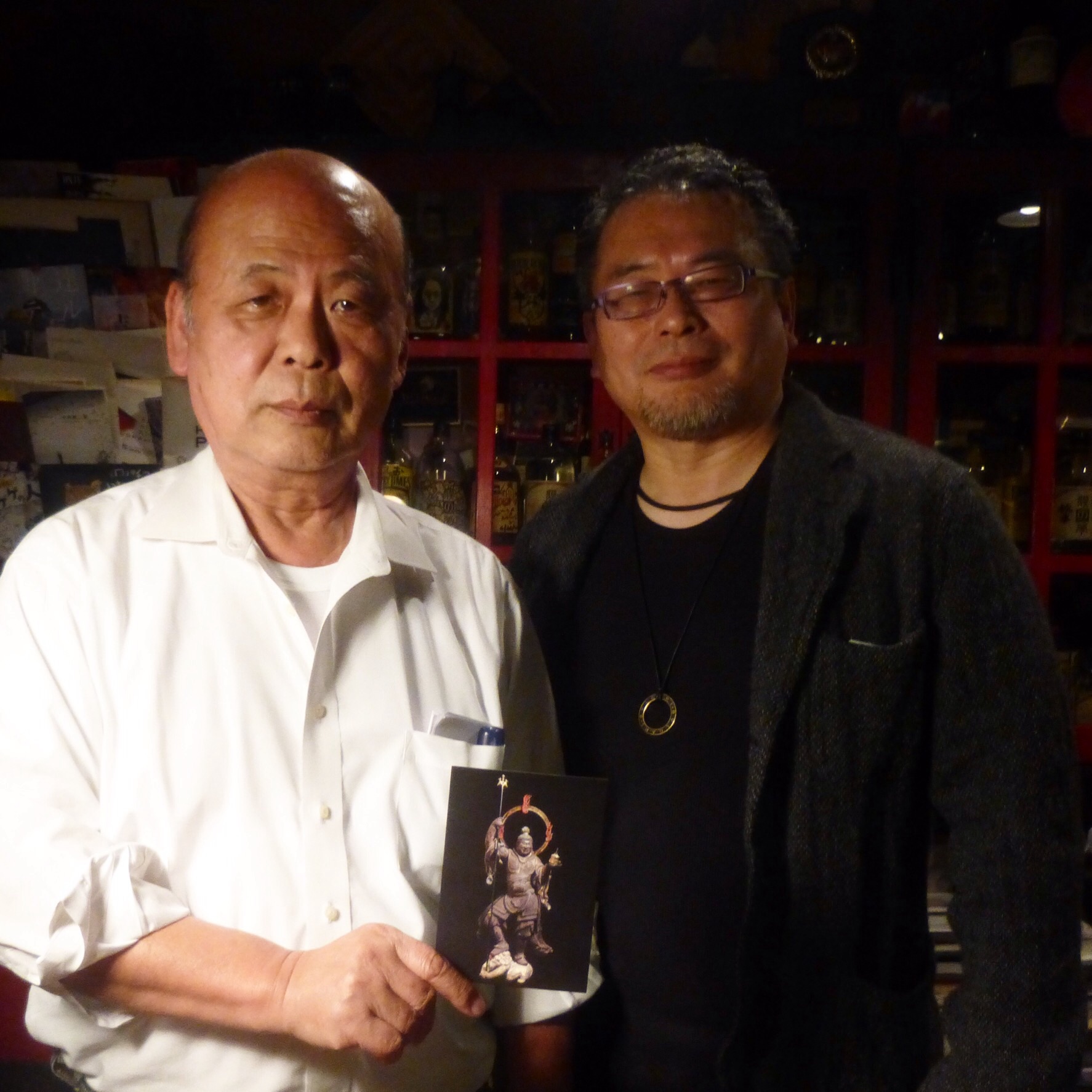 「怪人2人⁇」 奇跡的出会いでした。左が物書きの井本さん、右が染め物の小室さん。いつかは出会って欲しかった2人でした.共に怪人^ - ^ artspacebaku.net… 獏instagram.com/p/BcFJEi2gjqM/