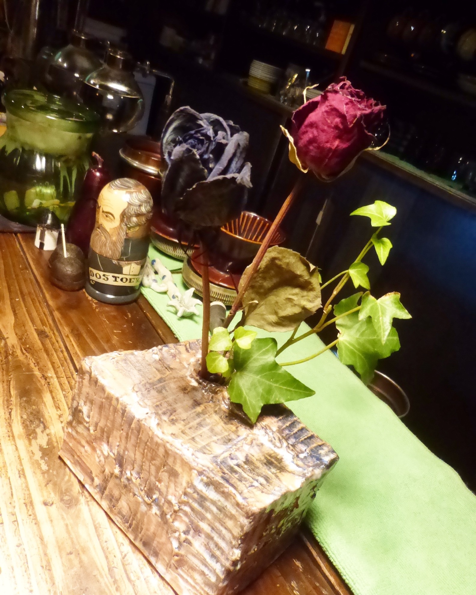 「チェンマイから😍」 ユウタロウがタイから来た。彼が焼いた重い陶器の花瓶をお土産に持って来てくれた。ドライフラワーと生花を活けてみた‼️ http://artspacebaku.net. #garally #cafe #photo #paint