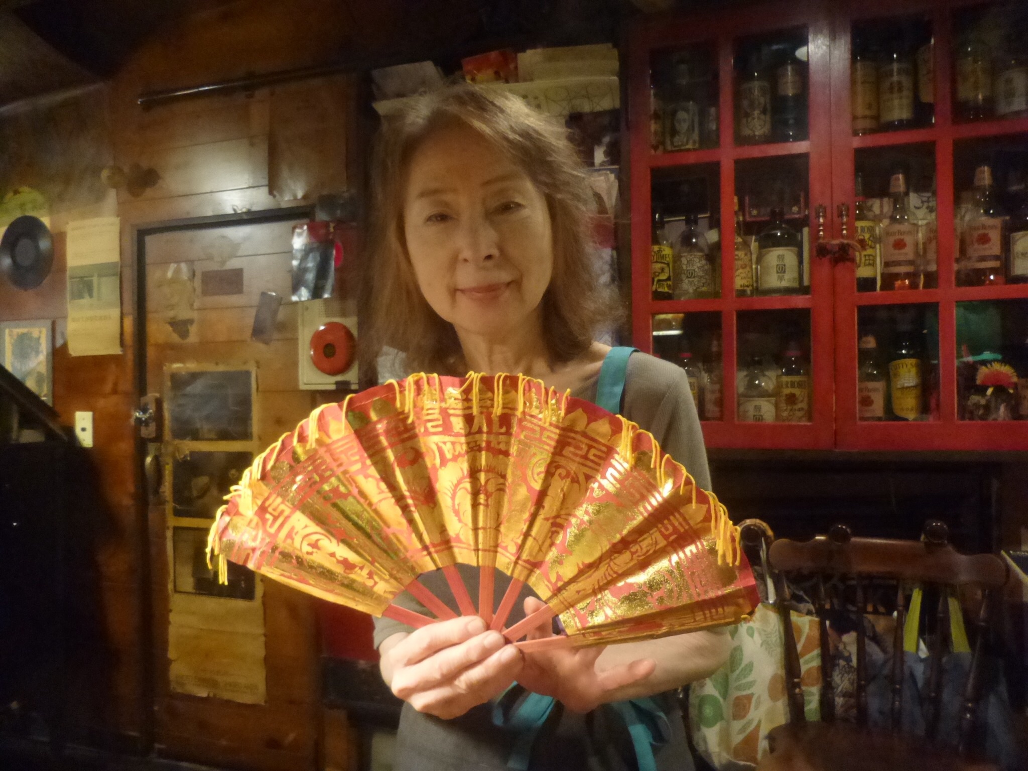 地震に遭わずに無事生還したコウタクのお土産、派手な扇子^ - ^