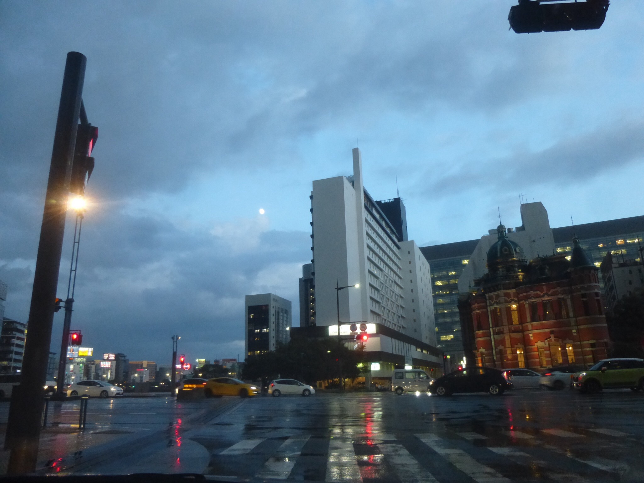 「博多の月」 夕暮れの都会、博多じゃないみたい^ - ^