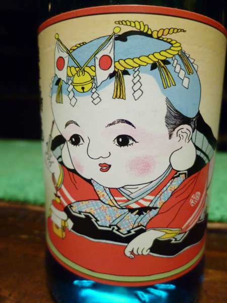 良く見てください。画面左、福助さんの手には扇子が、そして物思いにふけるように頬にかざしています。お鏡を見ながら「はてな?」という風に、しかも自分の頭にはしめ縄と鈴が、正月は来ているのに餅をみて「何?」とはとぼけてる~摩訶不思議な清酒のレッテル!あまりにも可愛いので律子さんが自分の誕生日に買ってきて飲んでました。おすそ分けで少し飲んでみたら薄くて甘かった。