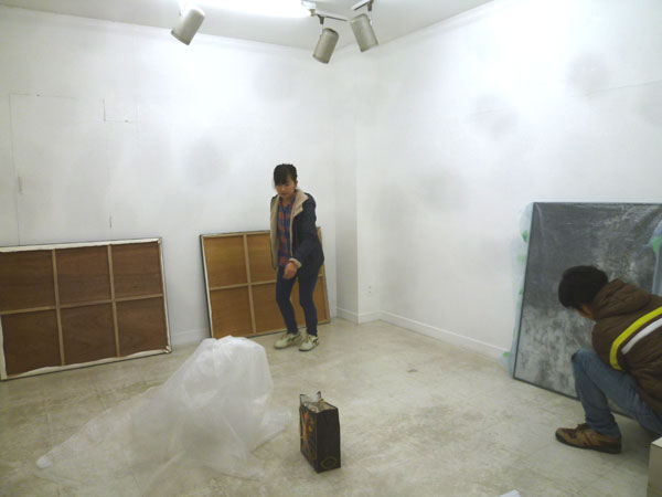 明日から「塚原舞加」作品展が始ります。ただいま飾り付け中!