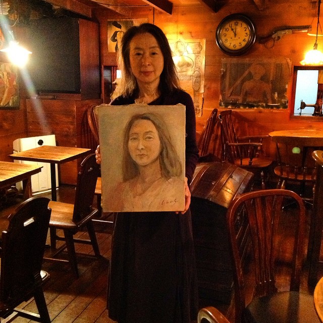 昔、産大の学生諸君、数人と始めたアートグッズのシヨップ「リバテイ」で肖像画の注文を取るために栗山勇君と村上慶樹君の合作で作られた「律子」さんの肖像画!30数年ぶりの再会!