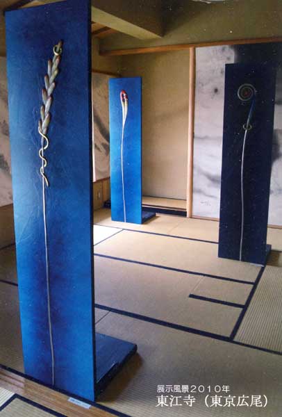 普通、制作現場と展示現場は異なり,制作する時の緊張感や静謐さが展示現場に反映されない。そこで仙道氏は展示空間を出来るだけ制作現場に近似しようと試みている。夜中、暗闇の中で一条の光、電気であったり月の光であったりするが、そんな環境で制作された作品を同じような環境の空間に展示することで制作した時の緊張、静謐が新たな見え方をするかもしれないと実験を試みている。作品は生命が持つエロチックな形態が植物を媒体に表現されている。