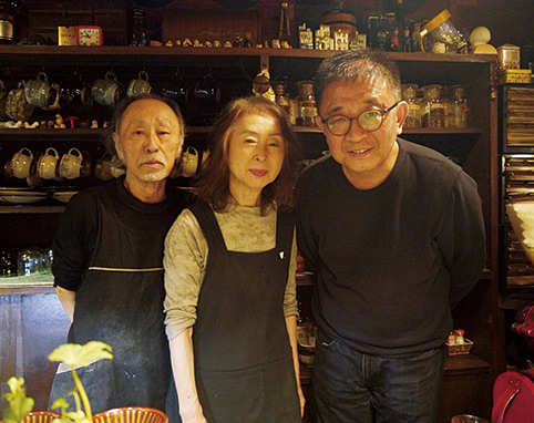 ▲ 貘にて、オーナー 小田満・律子夫妻とチャン・リュル監督
