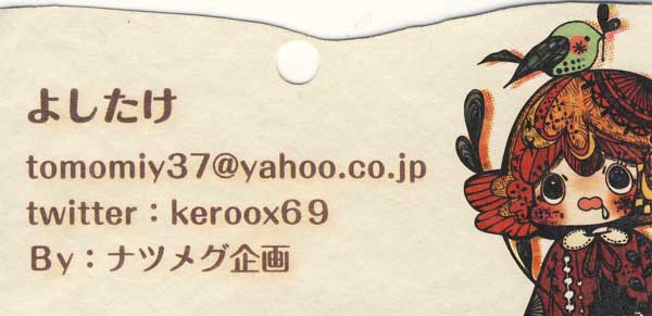 現在、専門学校でイラストを勉強中。将来はナツメグ企画というキャラクターグッズを販売する会社を起業するのが夢だそうで只今,邁進中!今回の展示はフォトフレームをアニメ映像に仕立てています。このよう使い方が出てくるとは驚きです。58枚の絵を動かせてみせます。