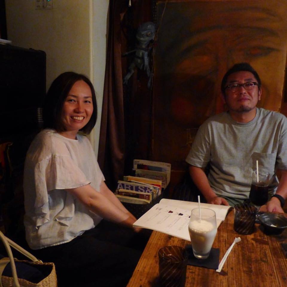 昔、貘でバイトしていた岡埼君。今は地元、熊本のtv局で頑張っています。地震で忙しくやっと休みが取れて福岡に遊びに出て来れた。隣の女性は友達だそうです。