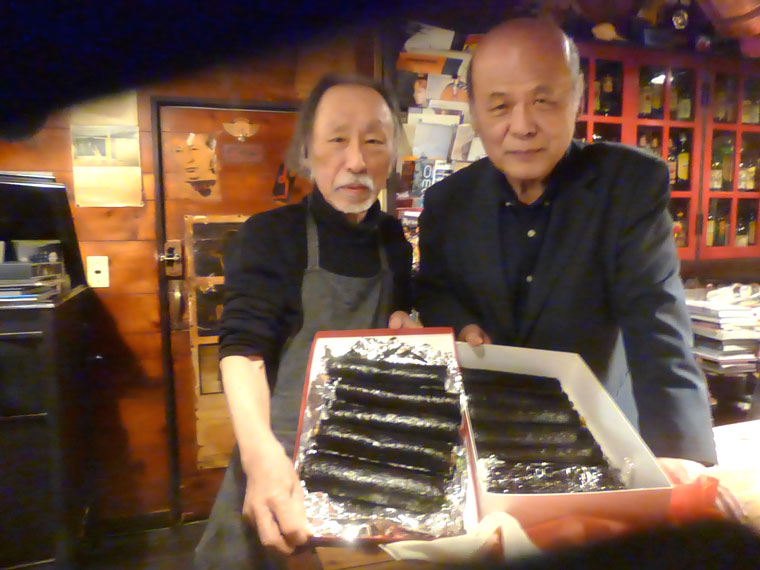 「男の愛情⁉」 オダミツル写真展のオープニングパーティーに井本さんが自ら巻いた「巻き寿司」を差し入れてくれました。美味しいうえに愛情を感じます。多くの人々にお祝いをされて無事にパーティーは終わりました。写真展は3・26~4.8までやっていますので時間がある方はアートスペース獏にお越しください。