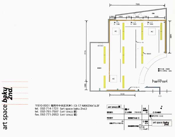 この度、ビルの老朽化による漏水工事とサポートをして頂いていた企業が天神から撤退することになり、それに伴ってアートスペース獏2NDも閉じる事になりました。僅かの期間でしたが皆様のご期待と支援を受けての船出しただけに残念でなりません。又、今年、個展を予定され作品を作成されていた方々に深くお詫び申し上げます。なおアートスペース獏は引き続き現代美術を追究する画廊としてやっていきます。2NDで開催予定だった尾花基氏の写真展「Azul de IBIZA」は屋根裏獏の店内で1部分展示することに決定。数多く作られた作品は来年、アートスペース獏での発表になりました*1。