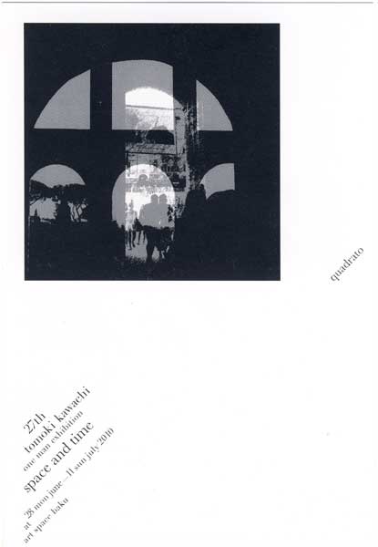 九州産業大学芸術学部デザイン学科教授の河地先生です。今回は異なる場所、(スペース)と違った時(タイム)を重ね合わせた作品です。イタリアとイギリスが撮影場所です。写真の内容と共に今回の面白さは写真の大きさが異なることです。アップしている正方形の写真を中心に様々な大きさに変化させてあることです。縦を基本に横の比率を変えていくもの、横を基準に縦の比率を変えていく作品。それぞれが対面で展示されています。皆さんの好きな形を探してみてください。