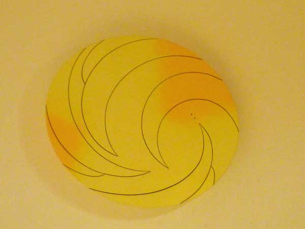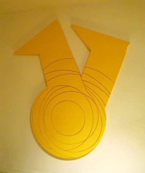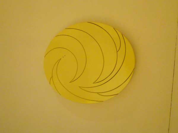 円は終わりなき始まりともいうべきか、無限の連続というべきか,恒星の軌跡か、濱本氏の作品に宇宙を思い人の人生を想う。重なり合う円、クロスする線、円が変形また新たなる円に変化していくたまには途切れて宇宙の彼方に消えていく。濱本氏の切り抜かれた部分が合わさり全体を作り上げていく構成はいつも躍動感に満ちた作品に仕上がっている。