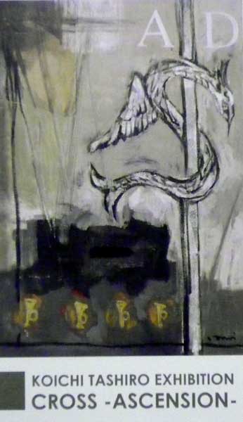 「芥子の花」F50 oil /「戦争の仕組み」450×1050 mixed media(これは前回個展出品作品)です。今回の個展では9.11から3.11東北震災、今までの世界の出来事をふまえて、2012年という年は、あらゆることの転換期になるのではないかとの思いから制作しました。僕自身の方向性という意味でも非常に考えた2年間でした。思考の断片を作品に散りばめています。