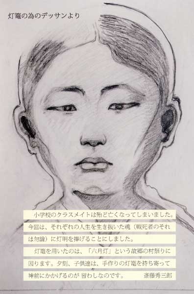 小学校の友達も殆ど亡くなりました。今回はその人たちの生き抜いた魂に灯明を捧げることにした。それに灯篭を用いたのは故郷の「六月灯」に因んだ。