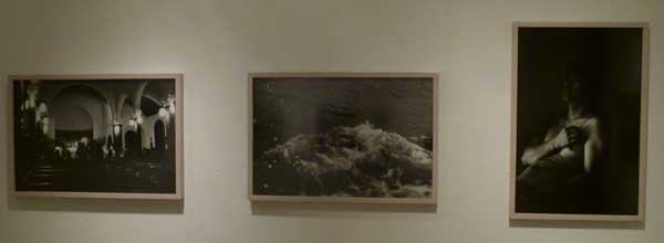 今回はヌードは一点もなく風景と情景を撮り下ろした作品18点を展示しています。40年前のオリンパスペンWを使用したハーフサイズの面白さを引き出しています。連写で撮ったもの、時間が経って撮られたものが同画面に写しだされたりしています。時空間が異なった光景や情景が同じ画面の中に存在することで写真の持つ瞬間性を封じ込めようとしている面白さと相変わらず、存在するものを闇に引きずり込んで気配を消し去ろうとする行為。日常的なものを通して観念を具現化しているようにも思える。